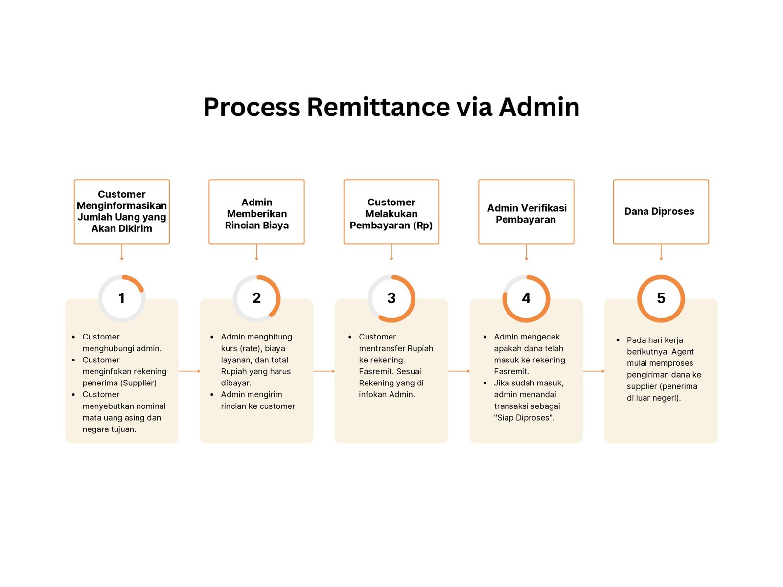 Layanan ini dirancang agar lebih sederhana dibanding transfer bank konvensional, karena semua proses dapat dilakukan melalui komunikasi dengan tim Fasremit (admin), tanpa harus datang ke bank.